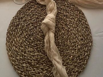 Inspired by natural textures, this charger features a soft, earthy design that complements boho and rustic table decor